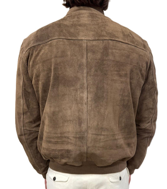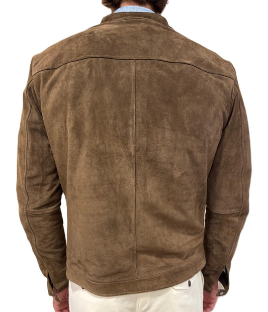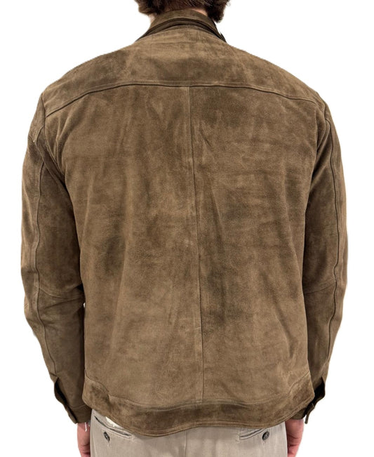 Giubbotto in pelle scamosciata blusotto tortora